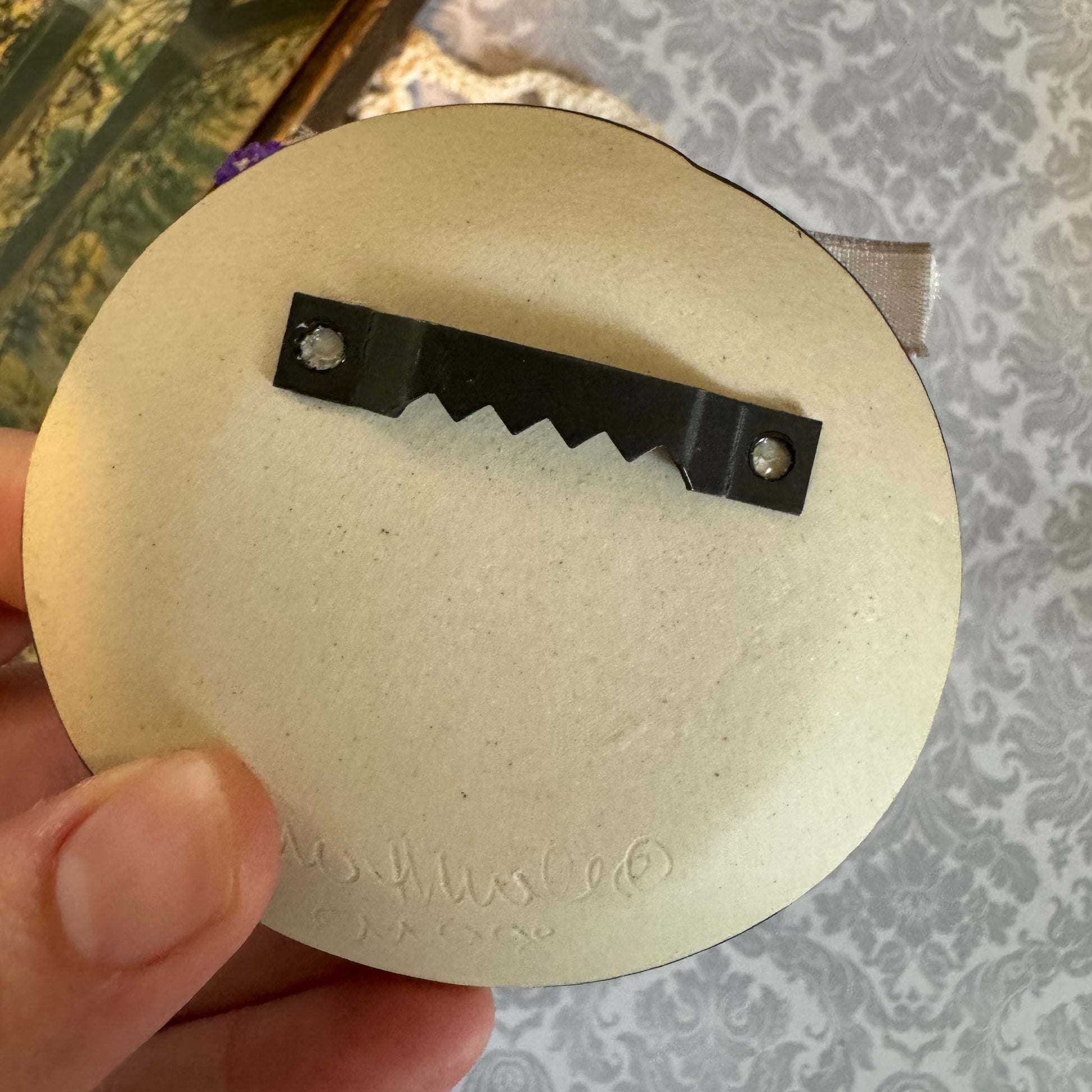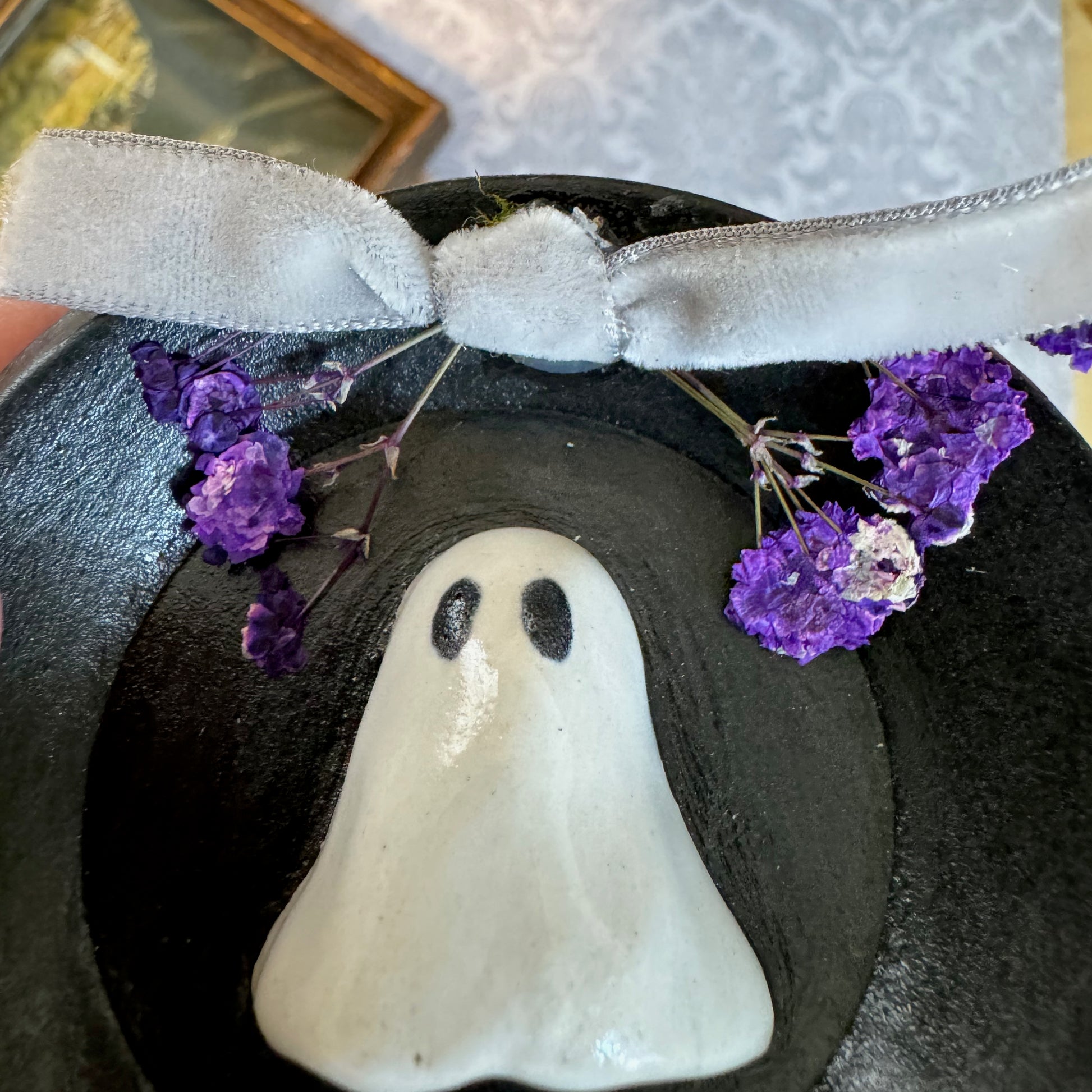 This handmade ceramic Cottage Garden Ghost Portrait is a whimsical portrayal of one of the many ghosts that haunt the Cottage Garden at Mothweed Cottage. Ready to hang in a special place of honor on your wall.Β