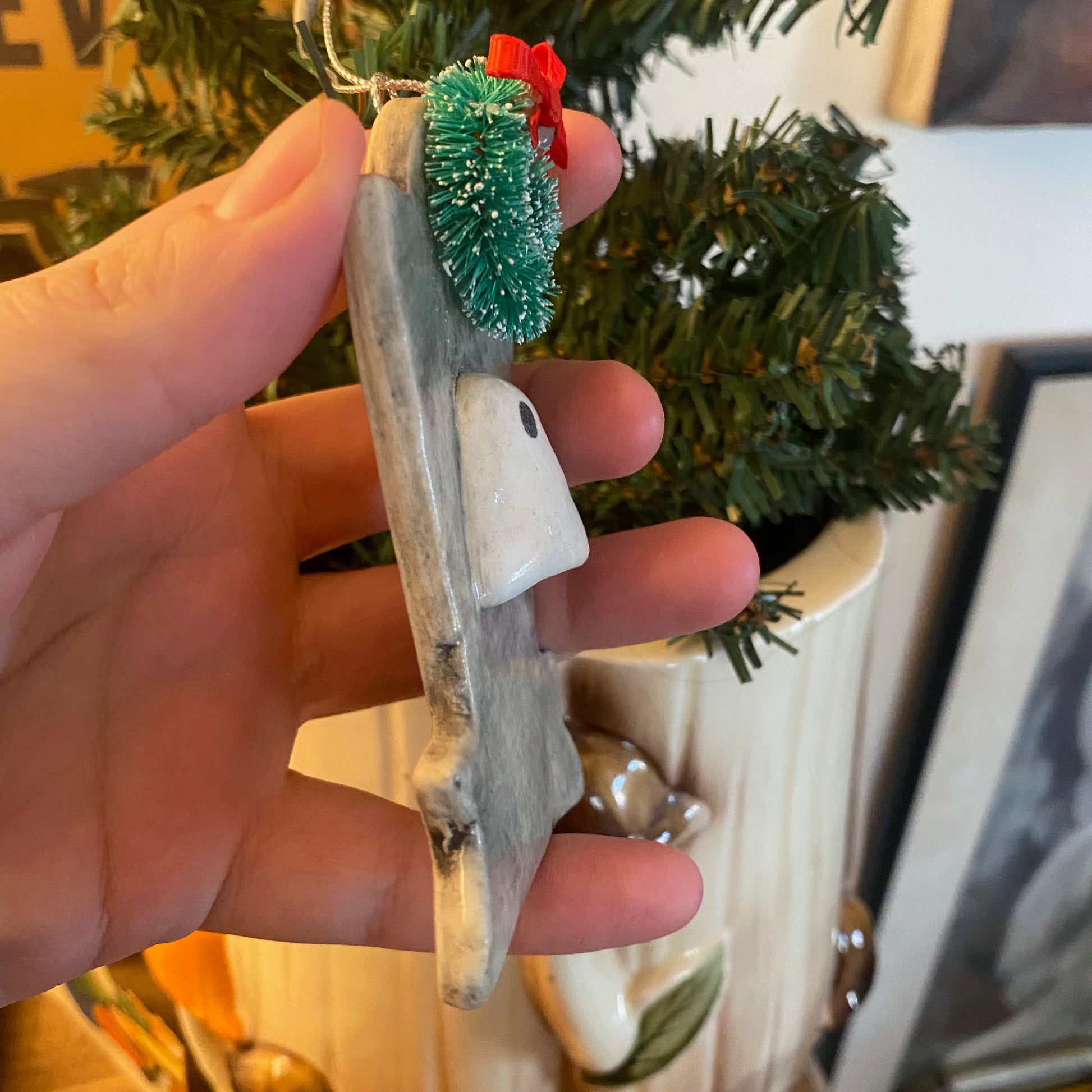 This handmade ceramic ghost tombstone ornament will add a little bit of whimsical macabre vibes to your home during the creepmas season!
