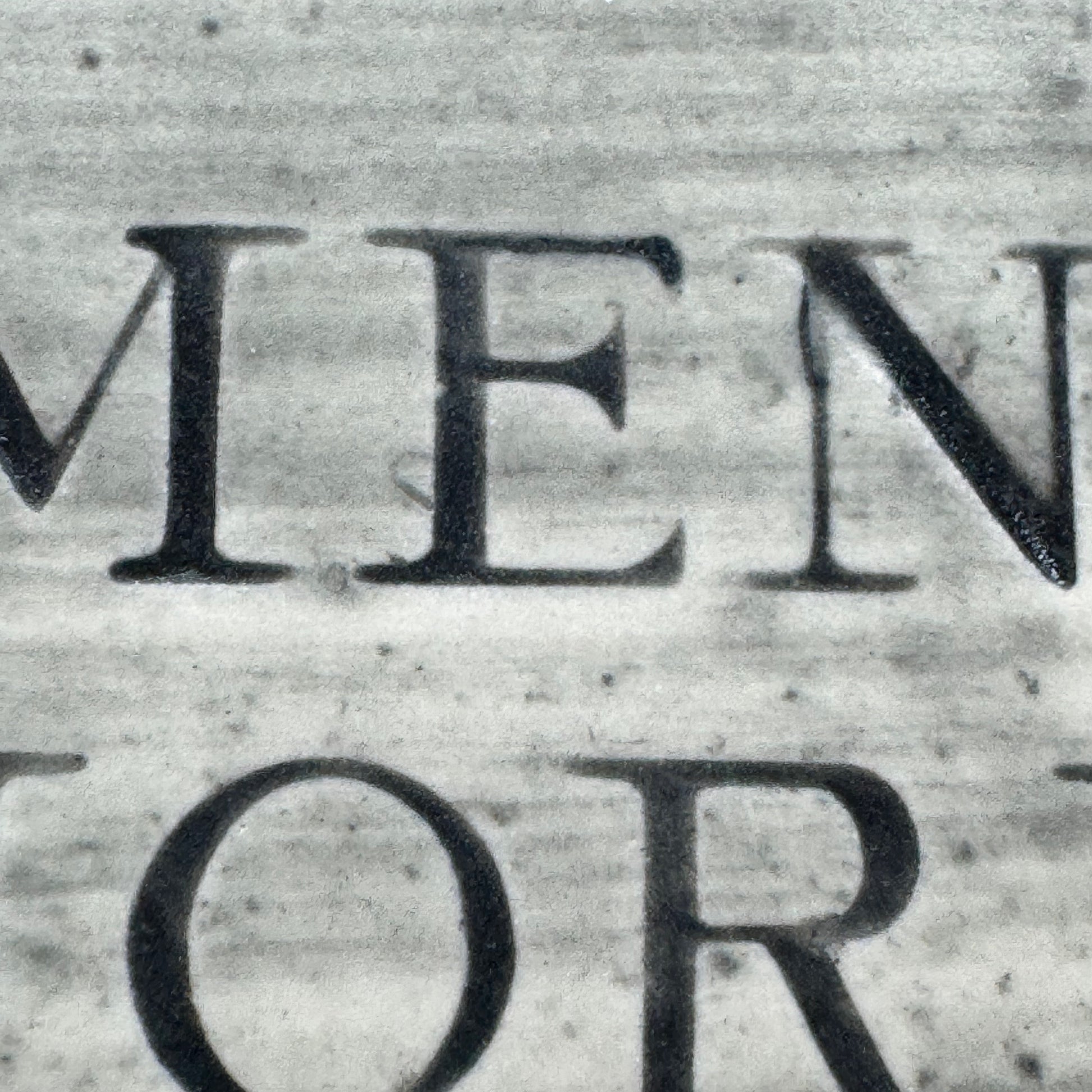 โฆ Decorated with a satin matte grey stone effect glaze with engraved black lettering.