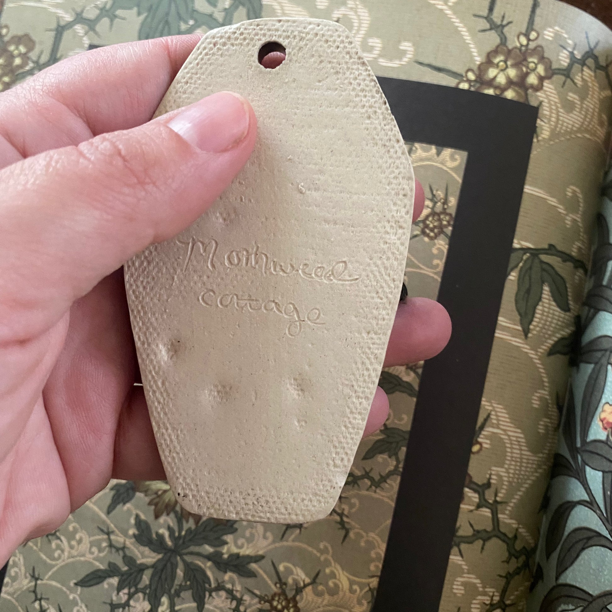This handmade ceramicΒ ghost coffin shelf wall hanging will add a little bit of whimsical macabre vibes to your wall any season of the year!