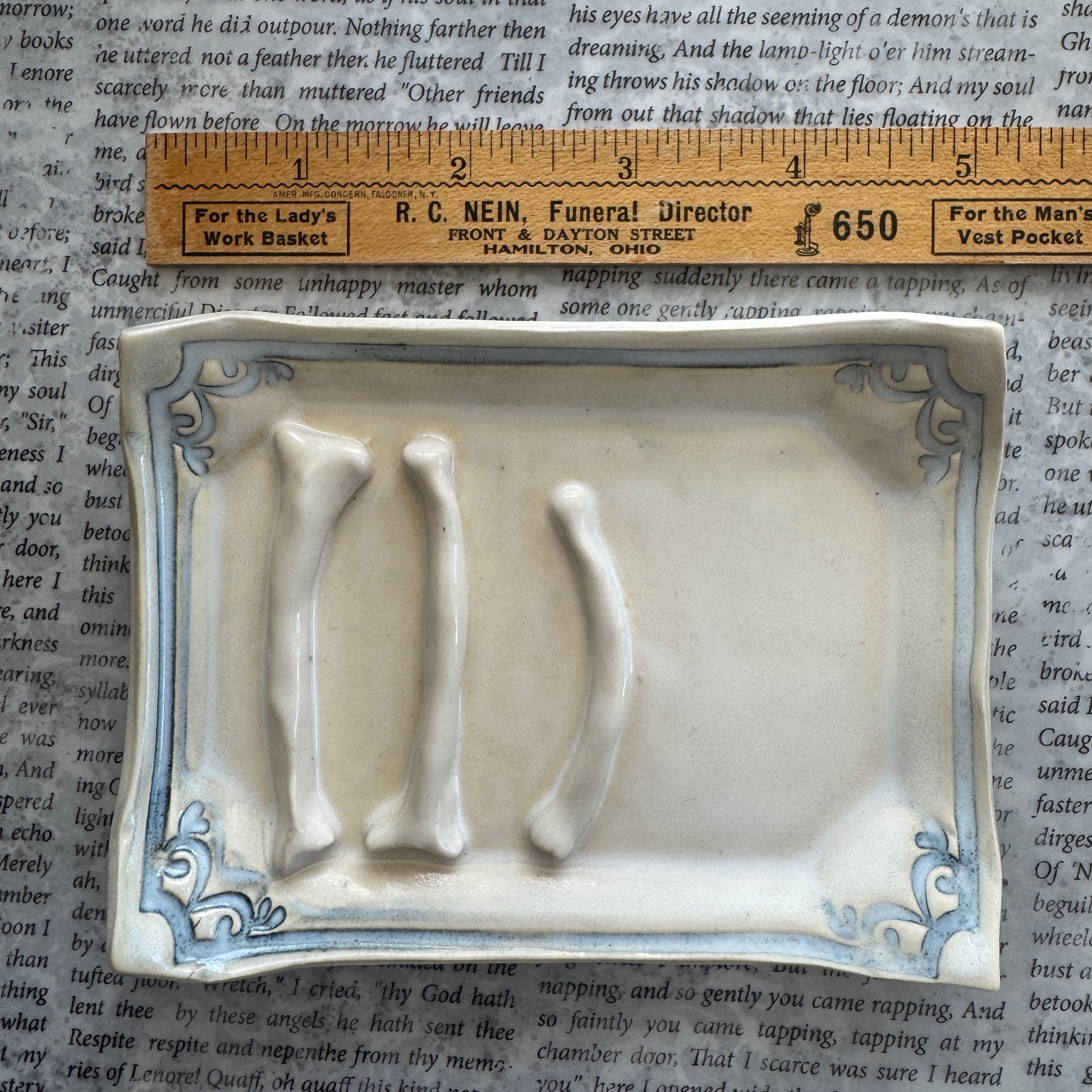 This ghoulishly delightful ceramic bones curio tray is perfect for holding small trinkets or adding a touch of macabre vibes to your decor.