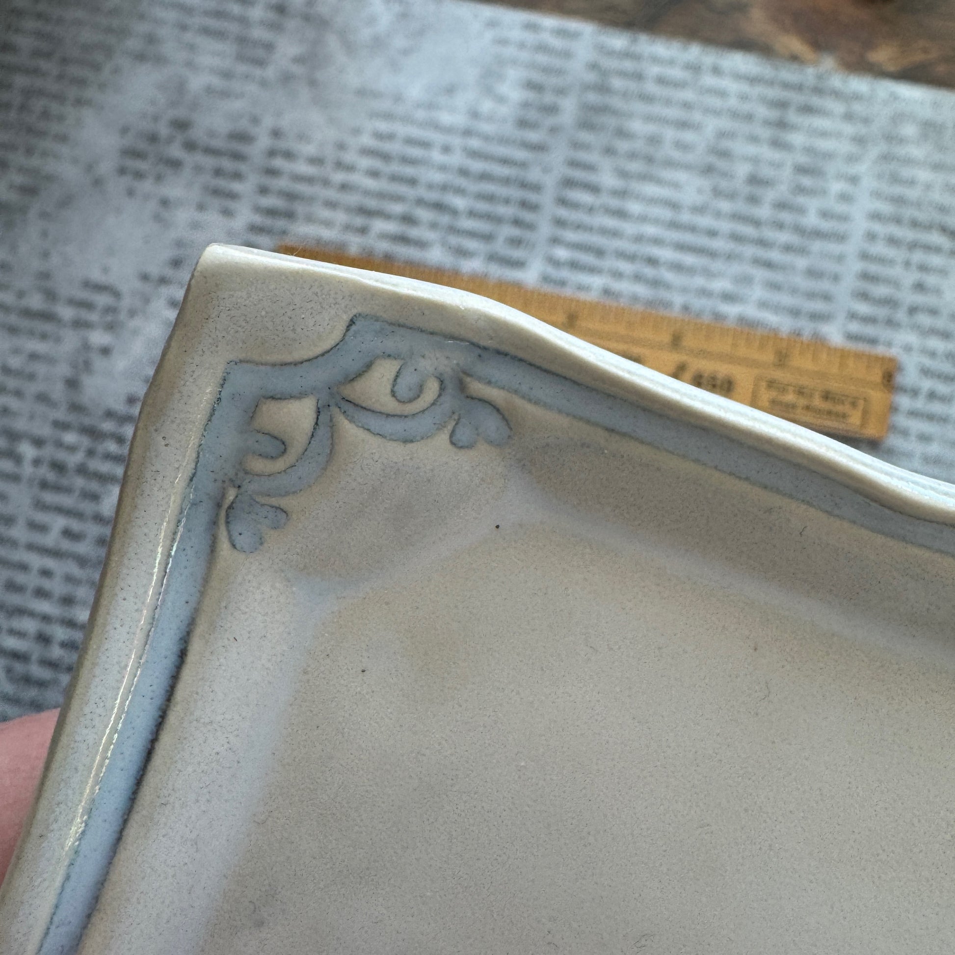β¦ Made from natural colored, stoneware clay. Each tray was hand cut from a clay slab, then hand decorated and stamped before being fired twice in a ceramic kiln.
