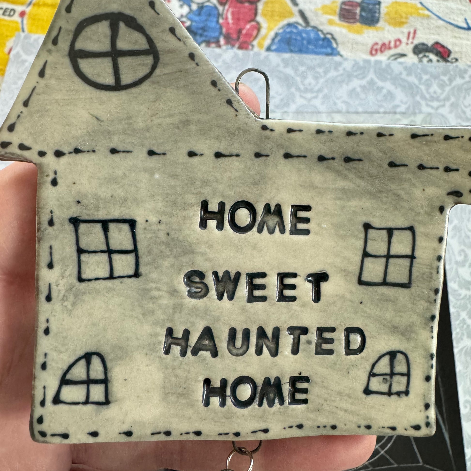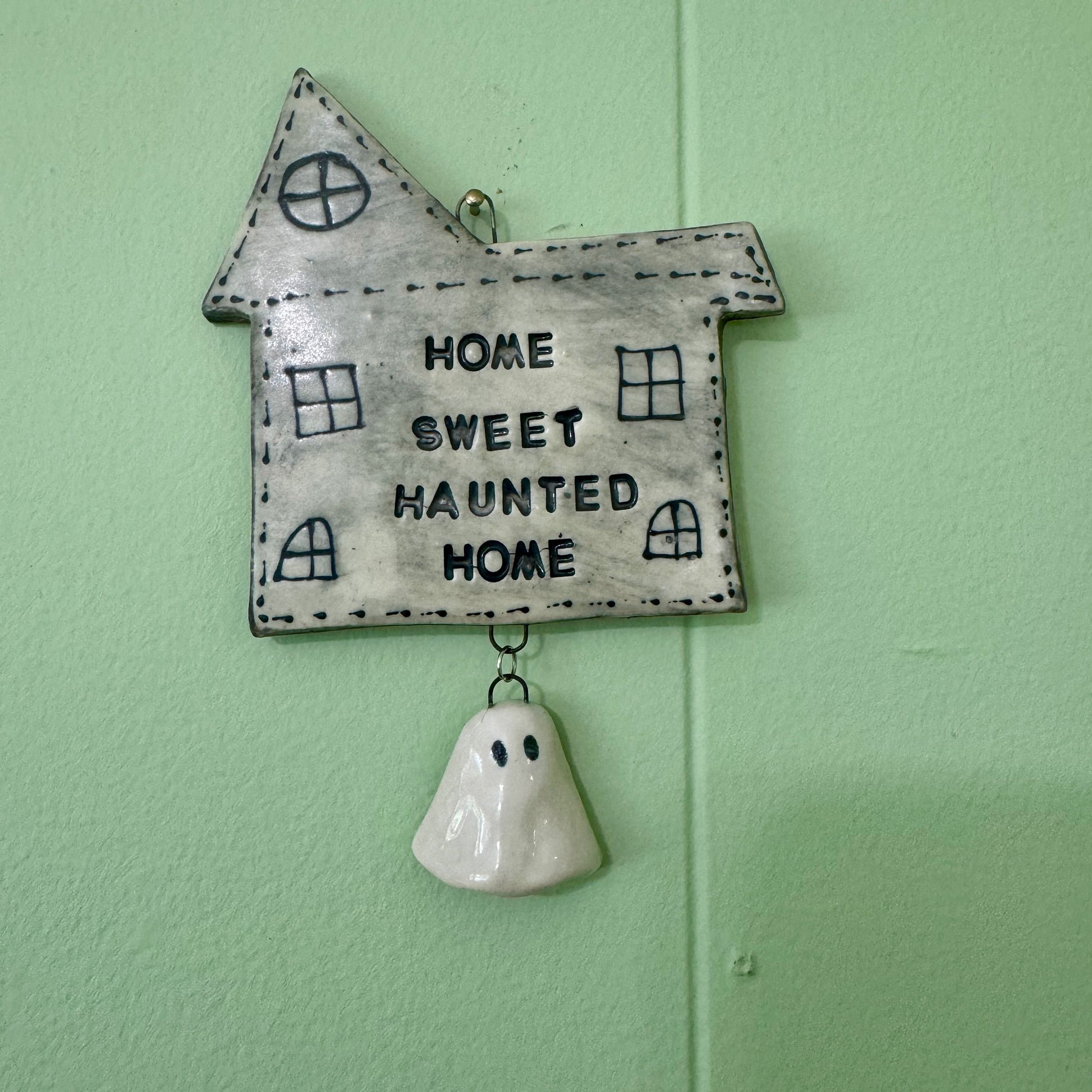 β¦ One handmade ceramic Home Sweet Haunted Home wall hanging