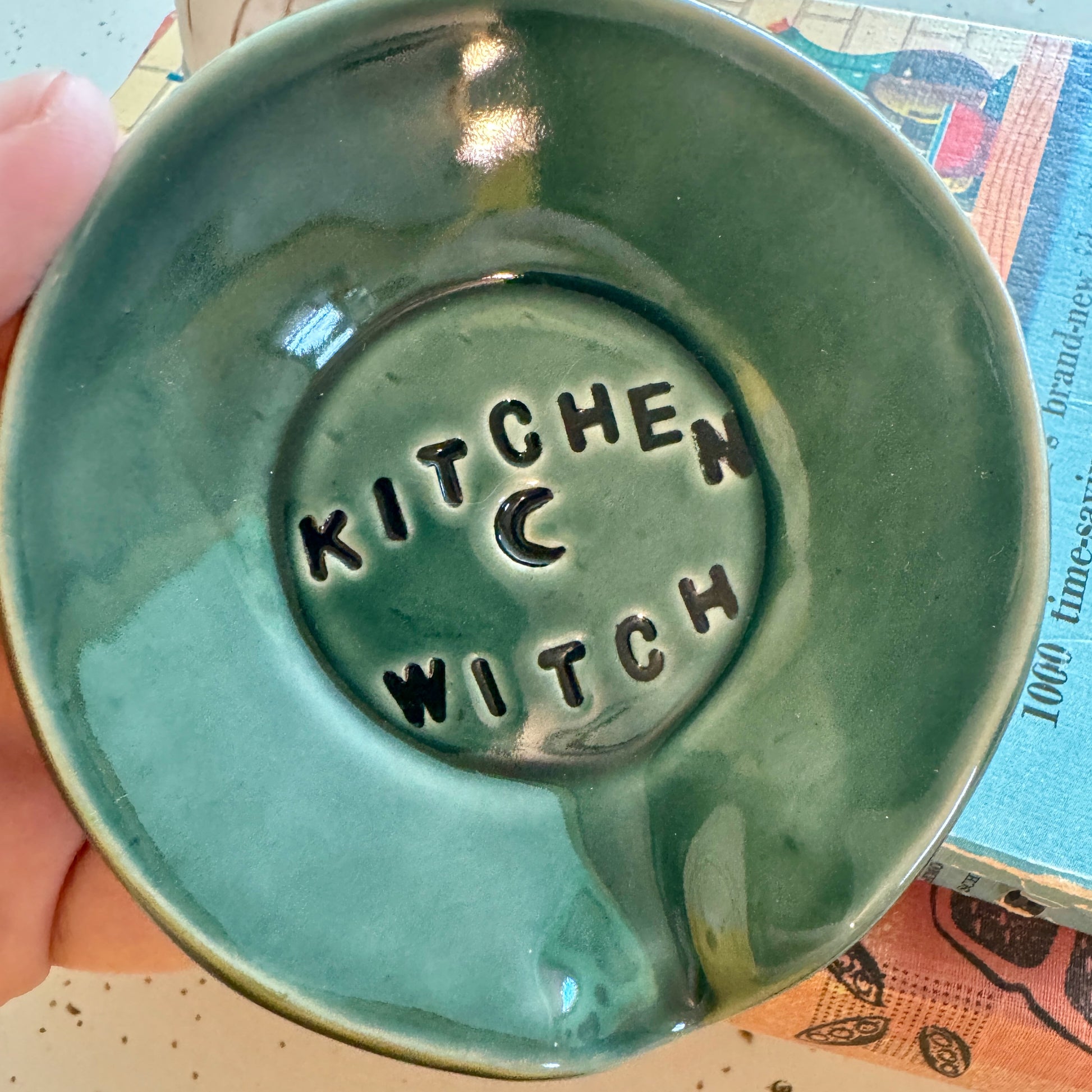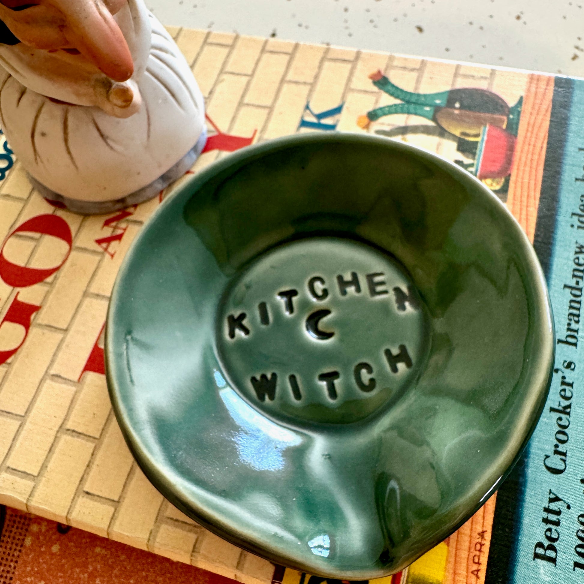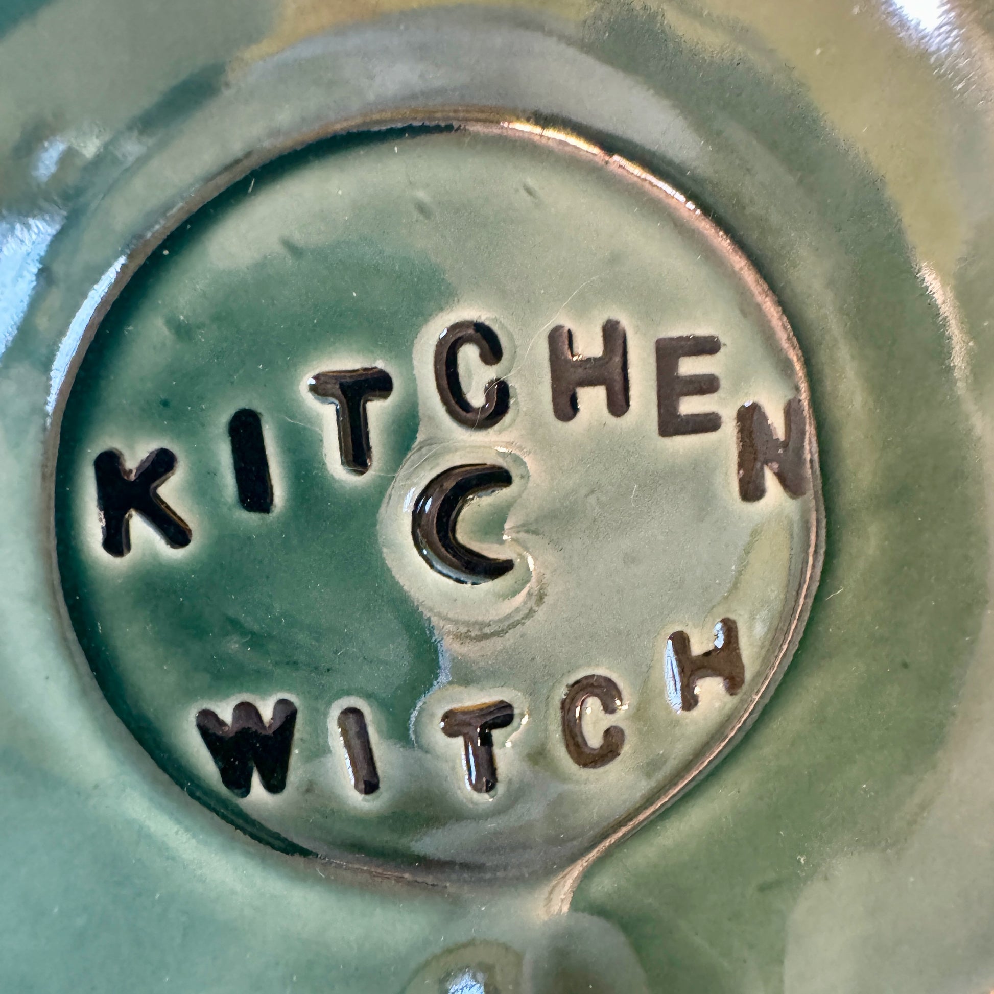 Spice up your kitchen with this handmade ceramic Kitchen Witch spoon rest. Keep your your counters spotless while harnessing the magic of the Kitchen Witch - a must-have for any magical home.