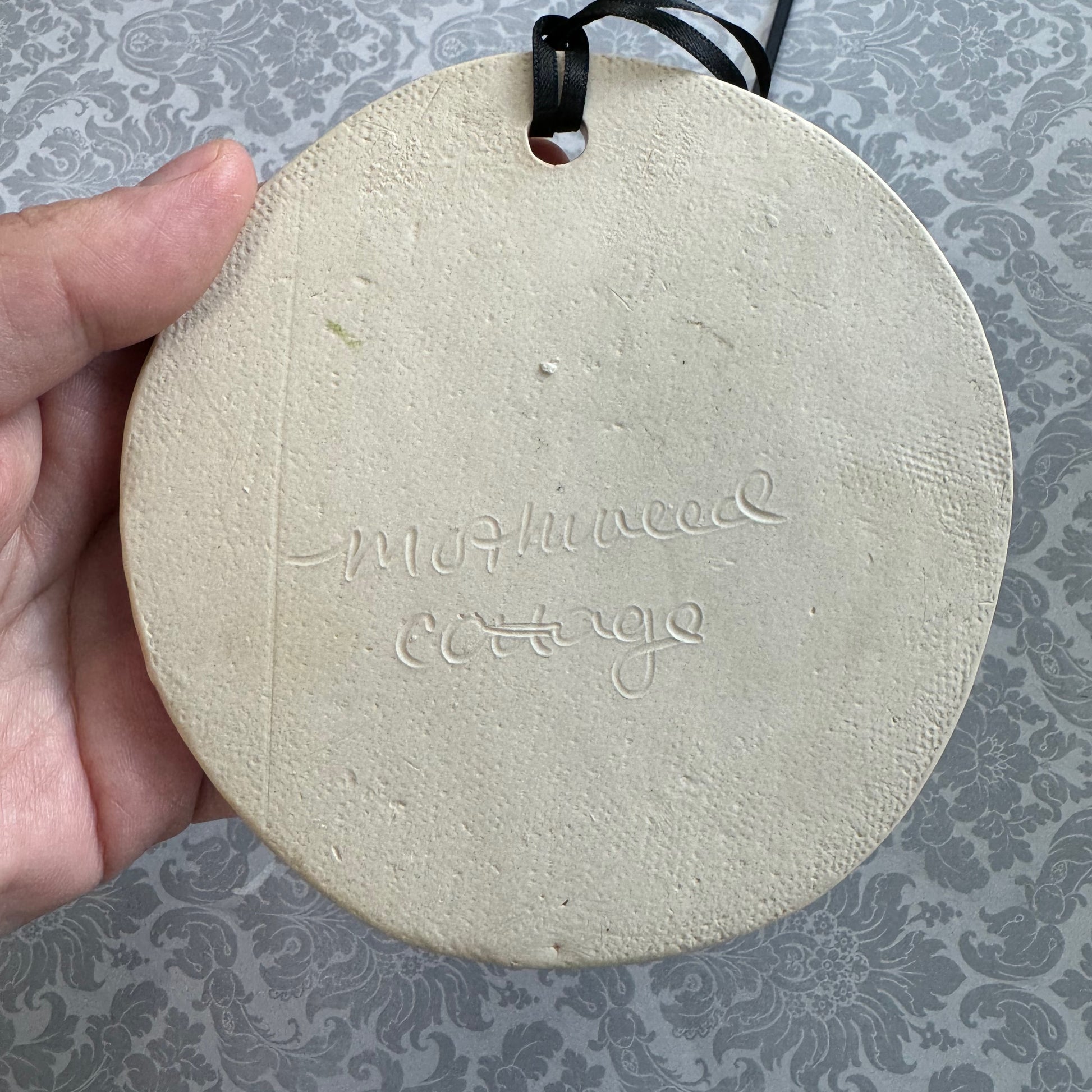 β¦ Made from natural colored, stoneware clay. Each ornament was hand cut from a clay slab, then hand decorated before being fired twice in a ceramic kiln.