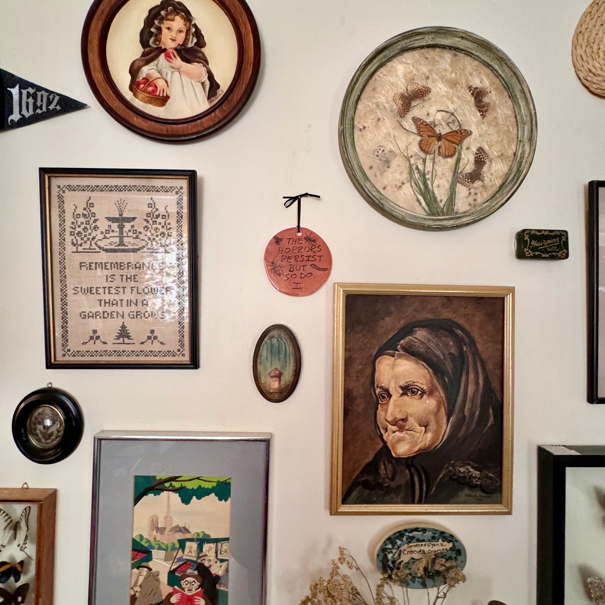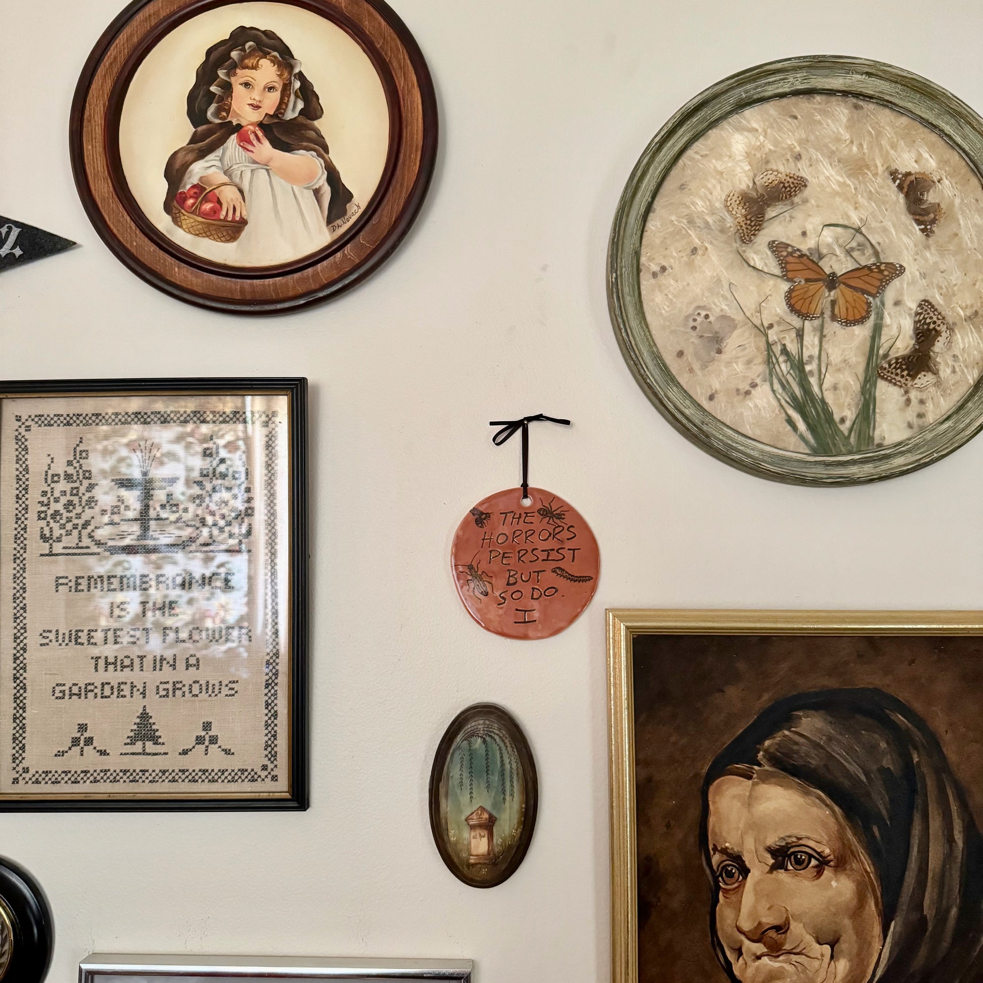 β¦ One handmade ceramic The Horrors Persist But So Do I wall hanging