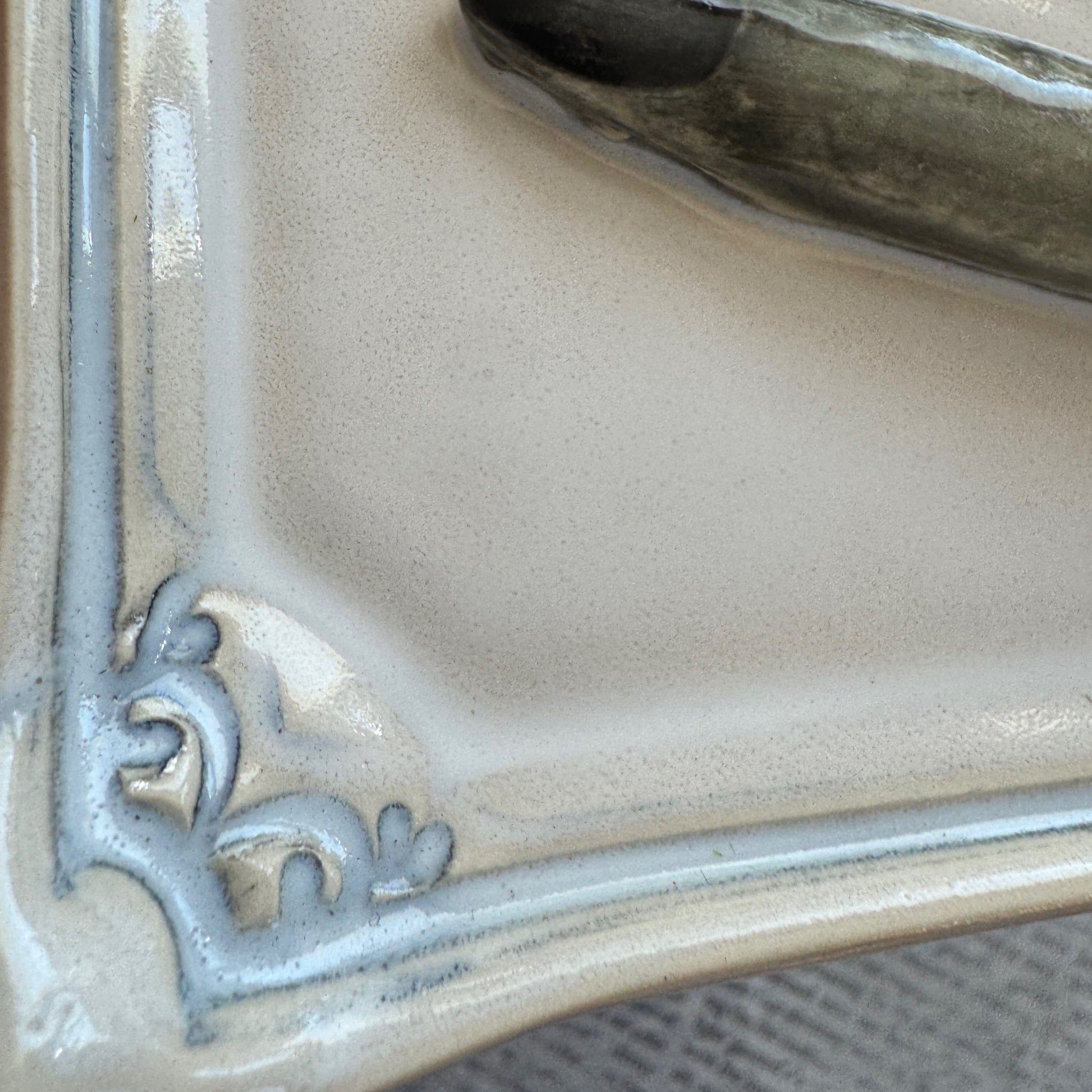 β¦ Made from natural colored, stoneware clay. Each tray was hand cut from a clay slab, then hand decorated and stamped before being fired twice in a ceramic kiln.