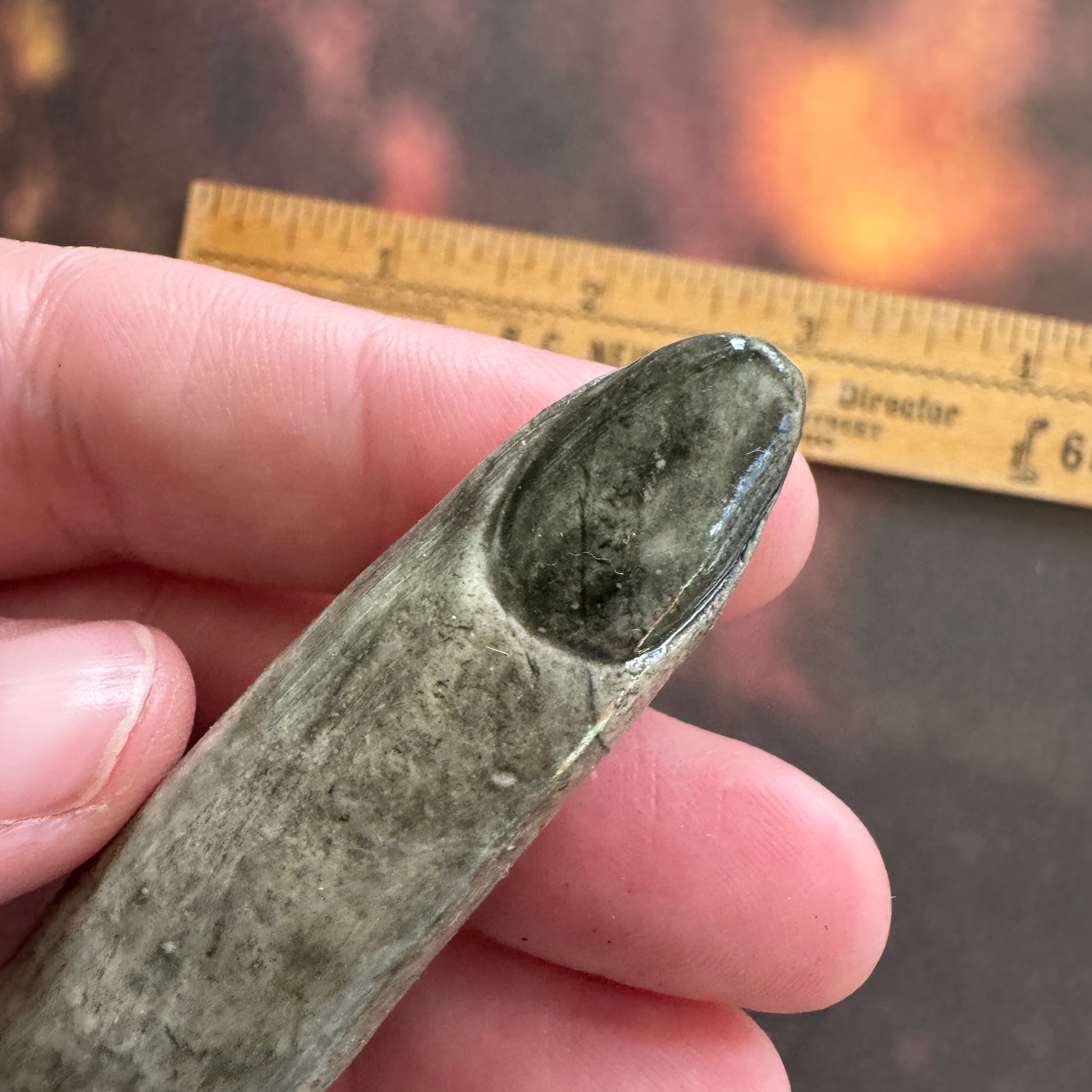 β¦ Finger is decorated with grey glazes with red "blood" accent. Back of finger is unglazed